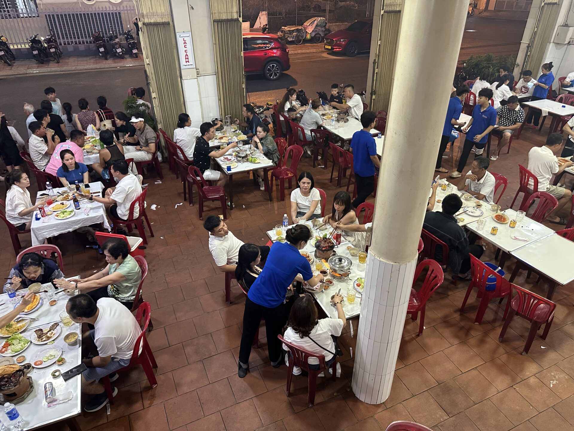 メニュー:ウエルカムドリンク/牛肉と根菜の炒め物/豆腐の蒸しもの/青梗菜のしょうがソース/肉団子ときのこのスープ/ばーおばあちゃんのチェー/ベトナムコーヒー