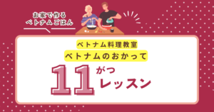 11/02 (日) | 午前:基本のキ!鶏肉のフォー ¥9000/午後:マカロニ炒め(Nui Xào) ¥9000 | ||