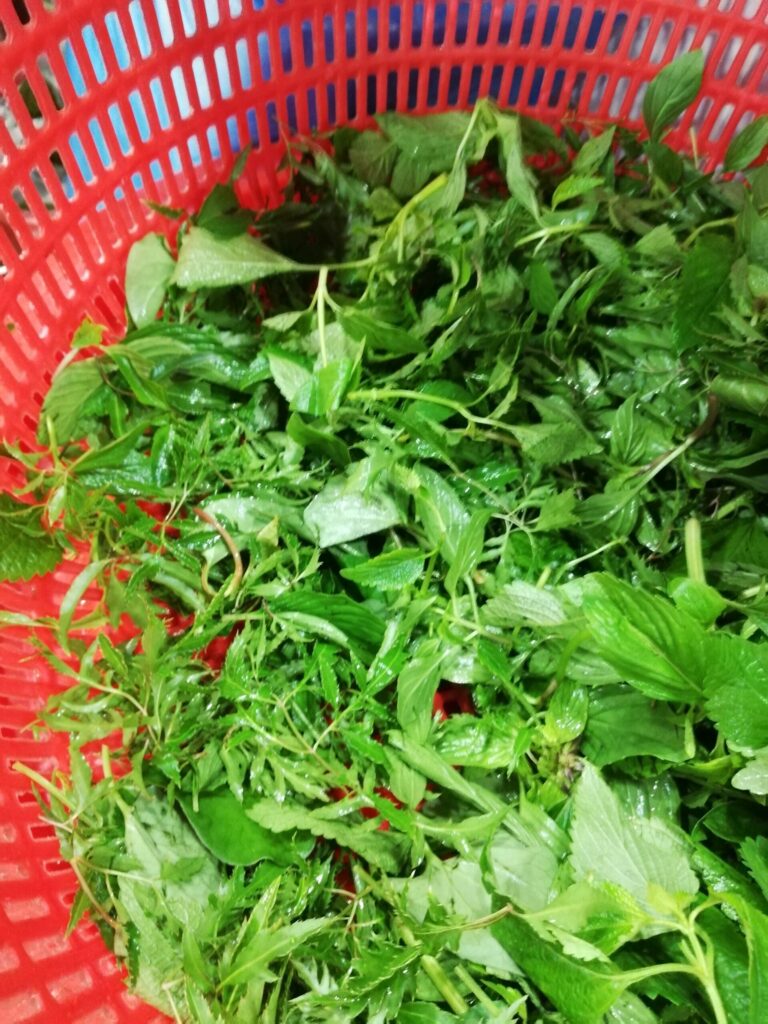 少し癖のあるベトナムハーブをミックスしてぱらり。