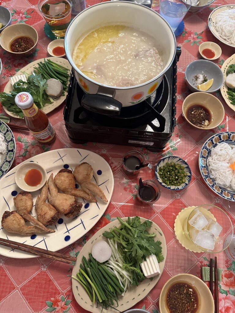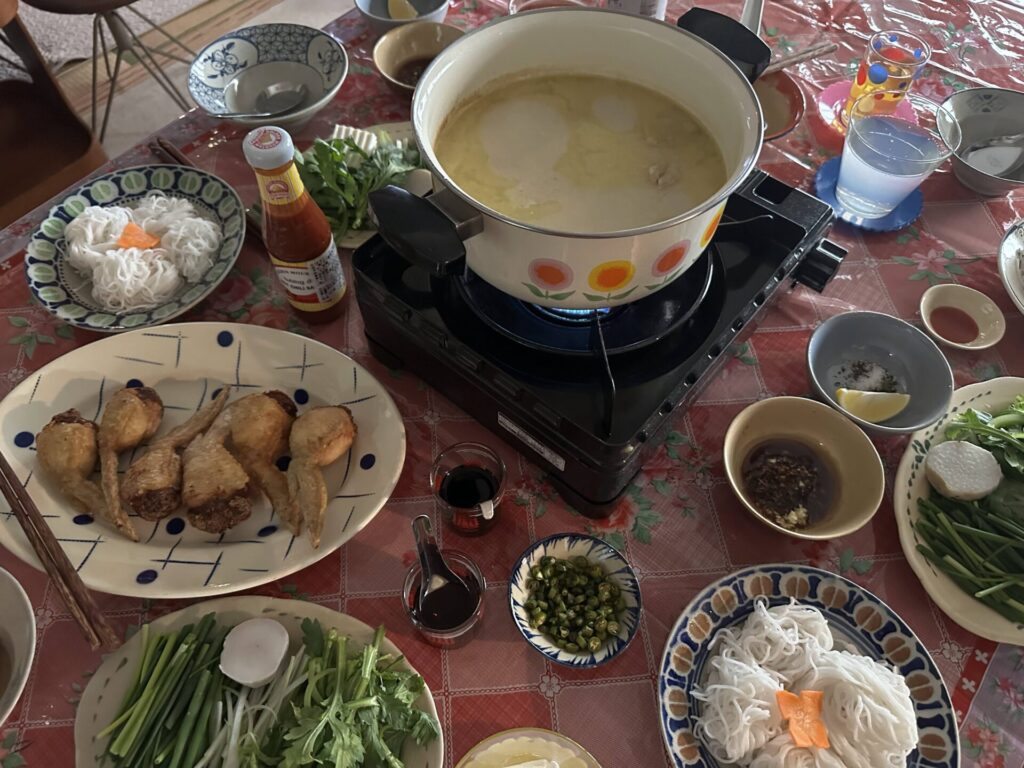 この鍋の相棒は、ベトナムの米麺「ブン」を加えて。